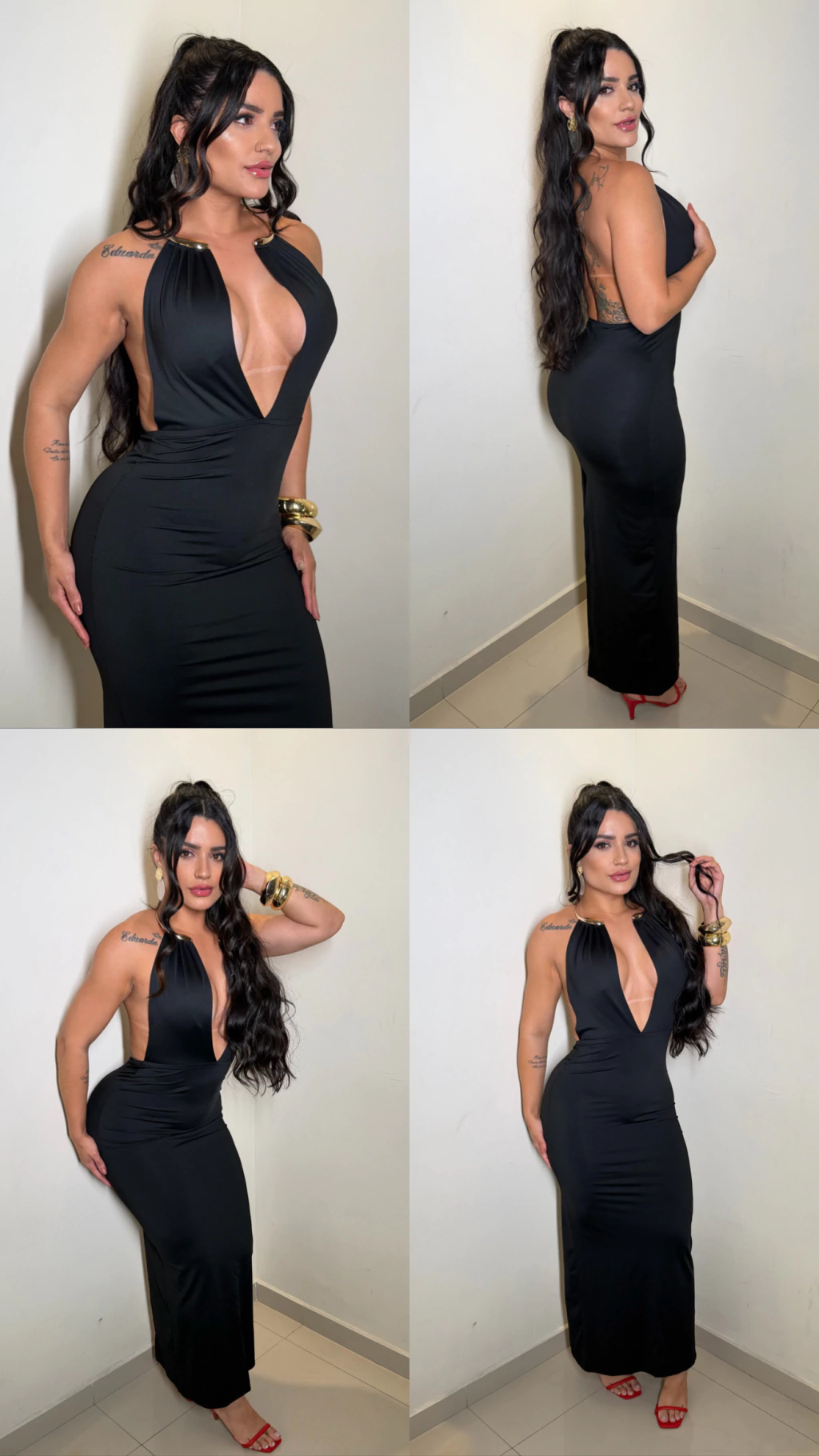 Prepare-se para arrasar com o Vestido Helo, feito em poliamida premium que não deixa nada à mostra — zero transparência, só charme! Ele é tamanho único, veste do 36 ao 44 e modela seu corpo como mágica. Disponível no clássico preto & branco para você se sentir poderosa em qualquer ocasião.